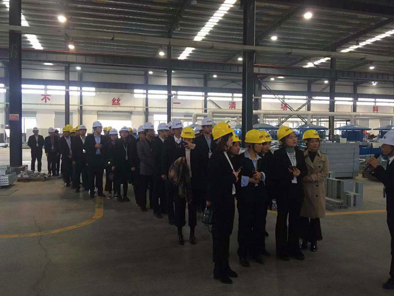 管理人員參觀鑫政模架生產(chǎn)車間