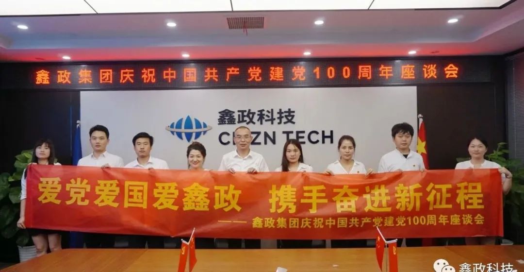7月1日,鑫政集團長沙總部舉辦“愛黨愛國愛鑫政·攜手奮進新征程”主題座談會。會上,黨員代表通過電視觀看了在天安門廣場舉行的建黨一百周年慶祝大會盛況,并結合鑫政發展現狀,圍繞黨組織建設、團隊建設、企業文化建設、業務開展、社會責任等踴躍獻言、積極獻策。集團副總裁楊三青在座談會上表示,希望全體黨員要發揮黨員先鋒模范作用,傳承發揚踐行初心、擔當使命、創新革新、一往無前的建黨精神,愛黨愛國愛鑫政,共同為“樹行業標桿,創世界品牌,做百年企業”的愿景努力奮斗。