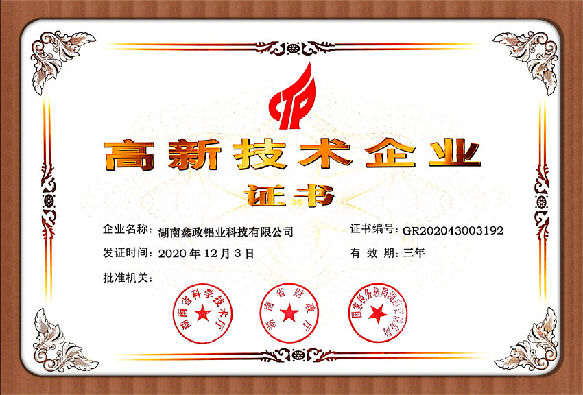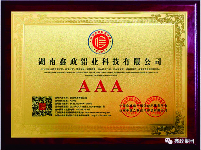 瀏覽次數(shù):1551近日,鑫政集團子公司鑫政鋁業(yè)喜報頻傳,再獲殊榮。根據(jù)湖南省2020年高新技術企業(yè)認定規(guī)定,經(jīng)專家評審、權威公示等程序,鑫政鋁業(yè)憑借產(chǎn)品研發(fā)、科研人才培養(yǎng)、質量把控等方面的出色表現(xiàn),榮獲“高新技術企業(yè)”榮譽稱號。同時,經(jīng)過中國企業(yè)信用誠信公示服務平臺的嚴格審核,該公司榮獲“AAA級企業(yè)信用等級”證書。